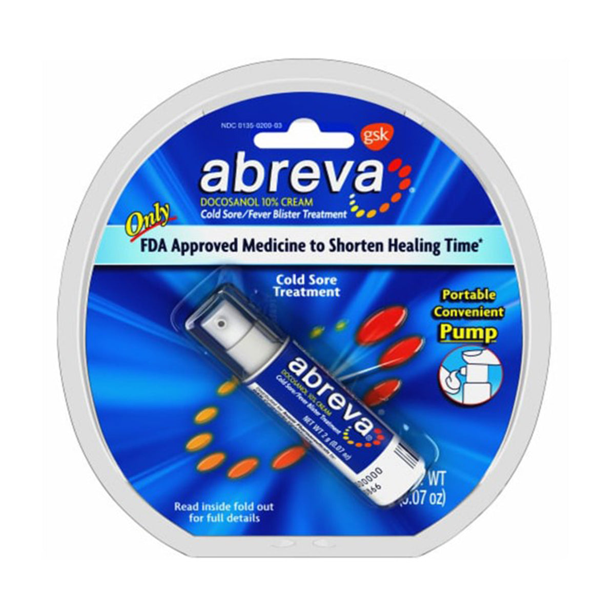 Abreva Cream contains the only non-prescription ingredient approved by the FDA to shorten cold sore healing time. The product of years of rigorous scientific study, Abreva Cream works fast by penetrating deep into the skin to target the virus that causes cold sores. It blocks the cold sore virus from entering surrounding cells and reduces the duration of pain, burning, itching and/or tingling. If used as directed at the first sign of a tingle, Abreva cold sore cream can heal your cold sore in just 2½ days.