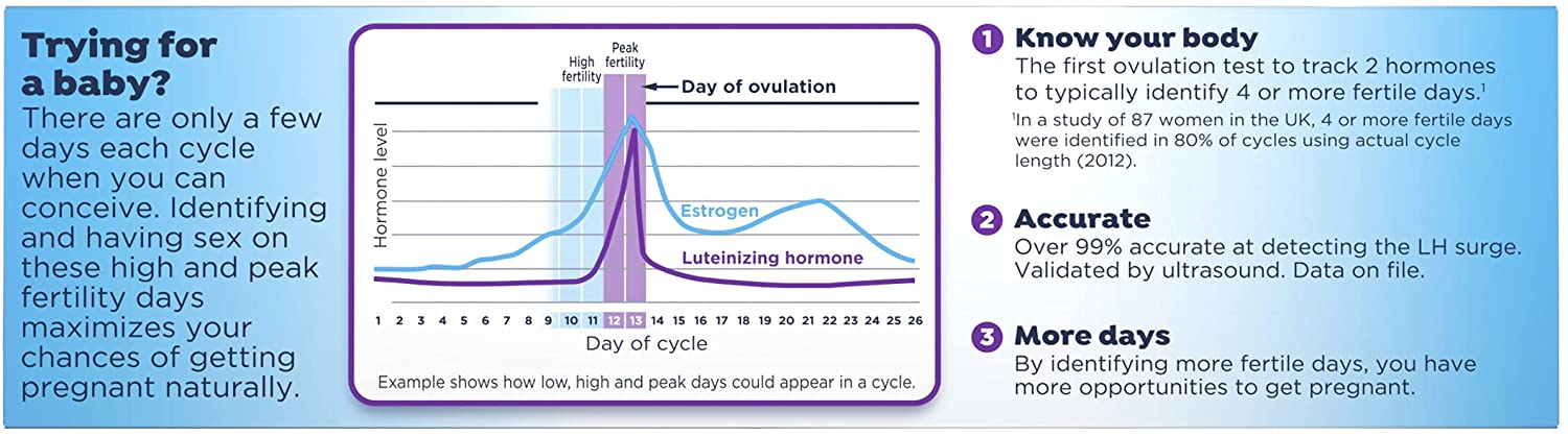 Typically identifies 4 or more fertile days to get pregnant** – at least 2 more days than any other ovulation test.