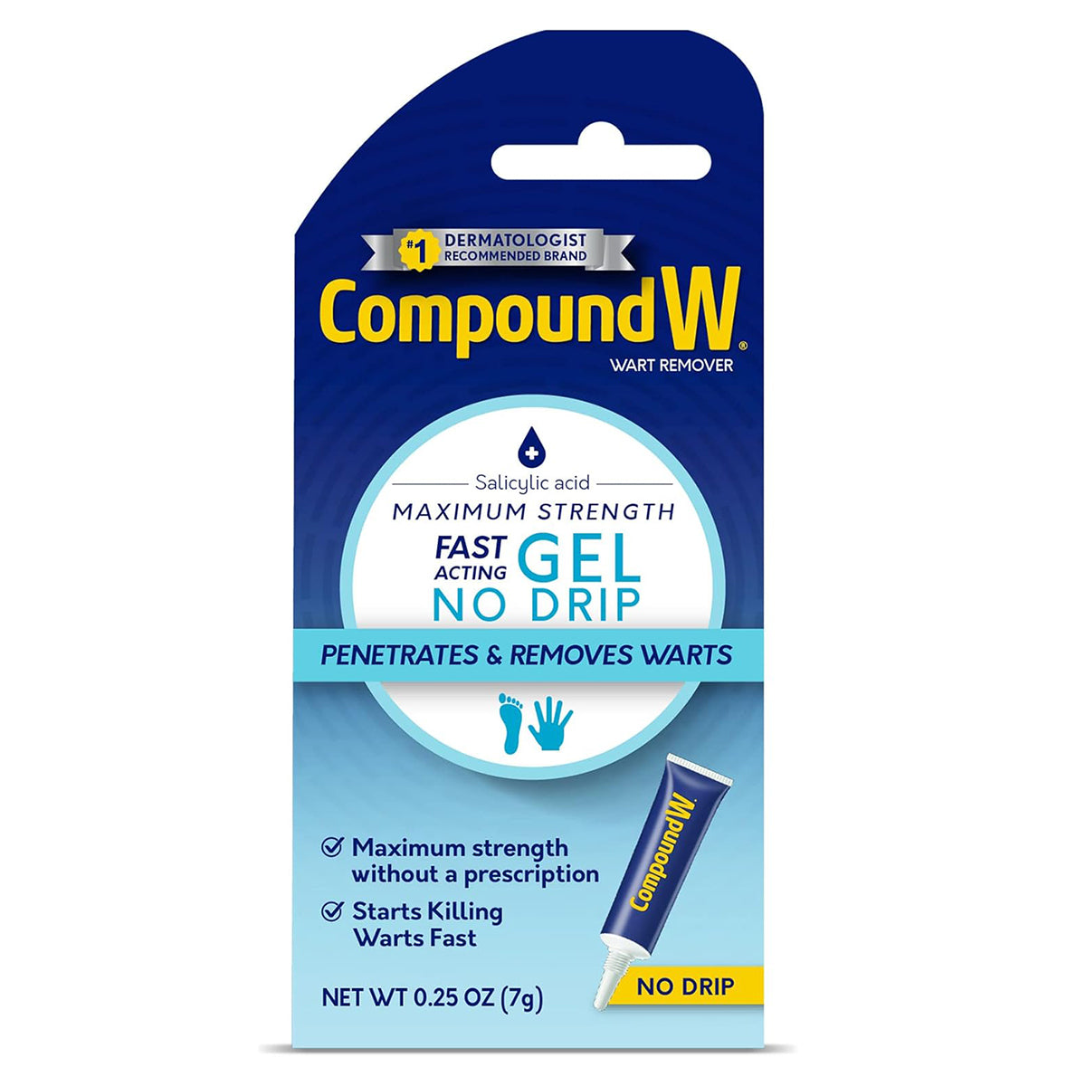 Compound W Fast Acting Gel easily removes stubborn common and plantar warts with its simple and effective no-drip formula. The product contains salicylic acid, a trusted active ingredient. The wart stops here.