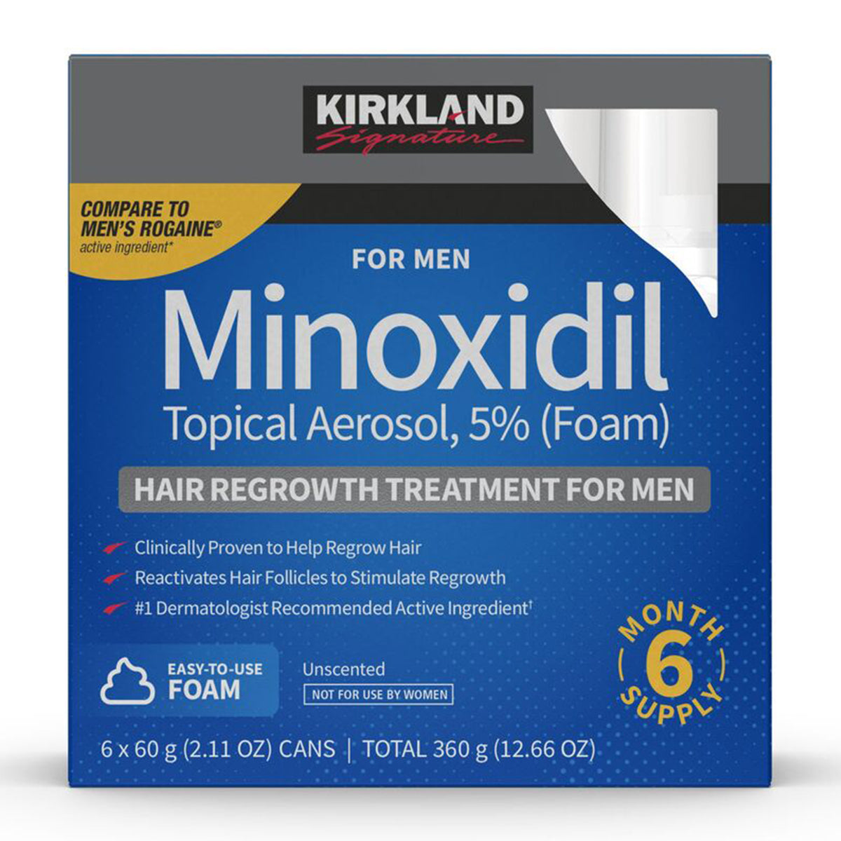 Kirkland Minoxidil Topical Aerosol 5% is a white foam containing 5% minoxidil for use only on the scalp as treatment designed to help promote hair regrowth in individuals experiencing hair loss, particularly due to androgenetic alopecia (male or female pattern baldness). The active ingredient, minoxidil, stimulates hair follicles and improves blood flow to the scalp, which can help revitalize thinning hair.