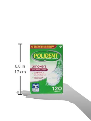 Polident Smokers Antibacterial Denture Cleanser Tablets has a non-abrasive formula, so it cleans without scratching and is gentler to your denture than regular toothpaste. Also, Polident comes in a variety of additional formulas, including 3 Minute and Overnight Whitening so no matter what type of denture cleaner you need, we have the solution for you. Polident is the number 1 dentist recommended brand of denture cleanser. Try Polident Smokers Cleanser today as part of your daily routine to help contribute to good oral health.